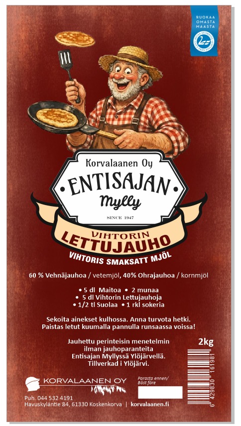 Jauhettu vanhalla Entisajan kivimyllyllä.